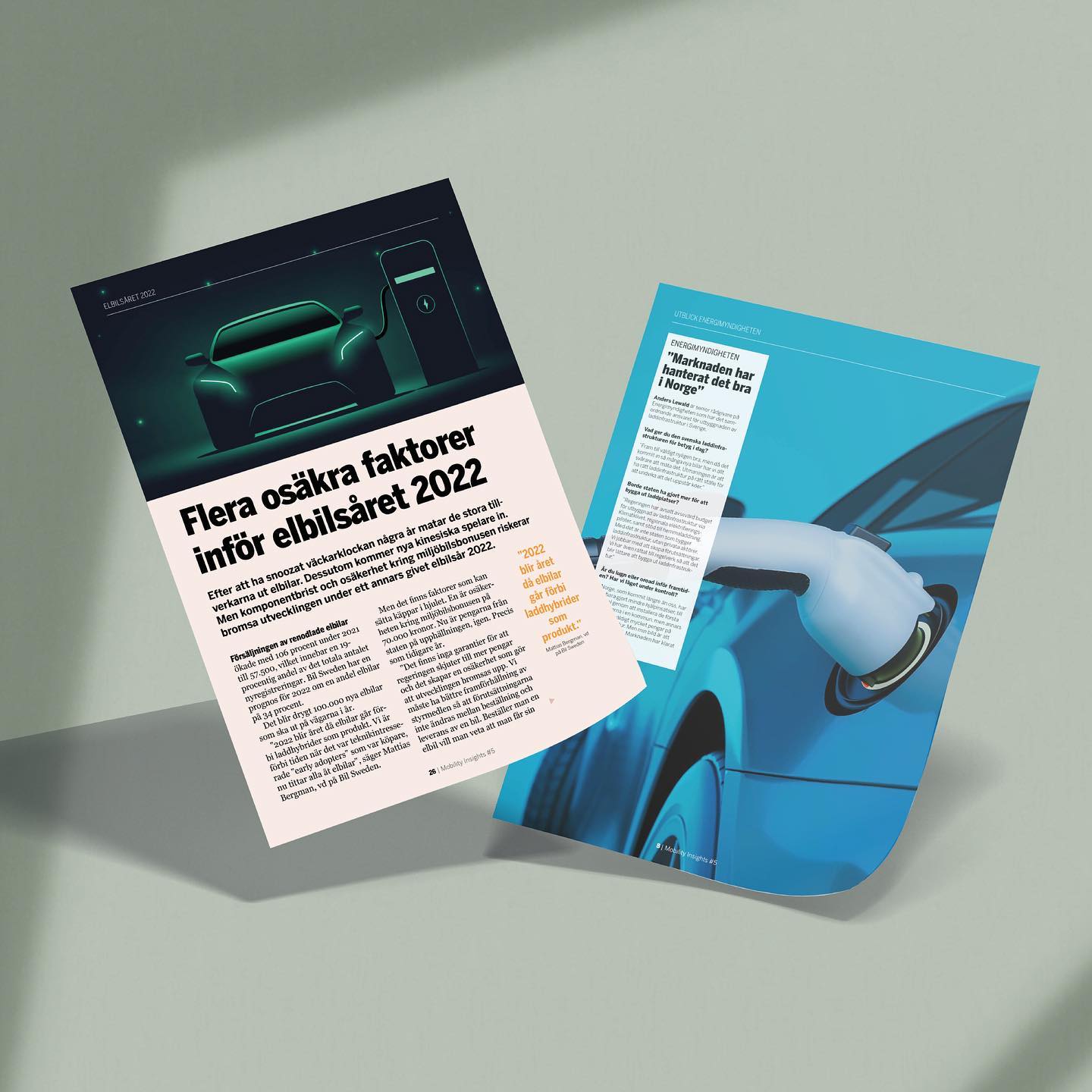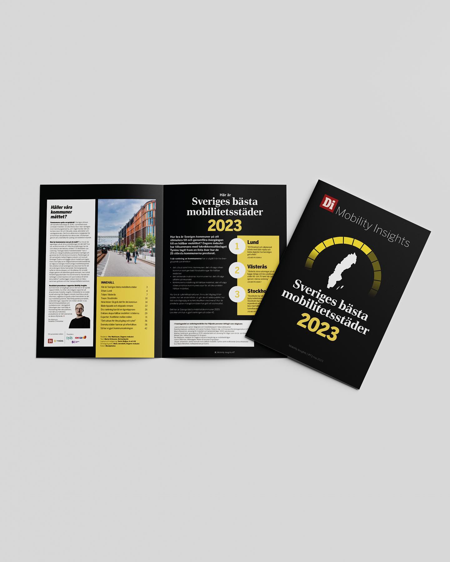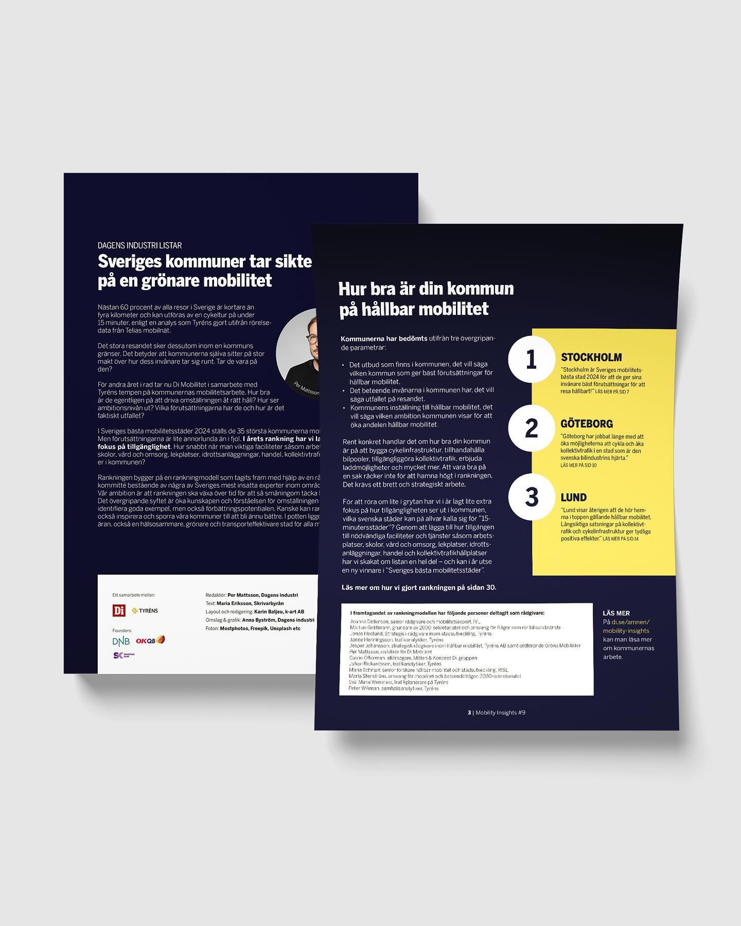 Di Mobilitet ger ut rapporten Mobility Insights två gånger per år med målet att kartlägga, identifiera och analysera trender och utveckling inom mobilitet. k-art har utvecklat formspråket utifrån satt grafisk profil och formger rapporten löpande. Alla rapporter finns att läsa på di.se/amnen/mobility-insights