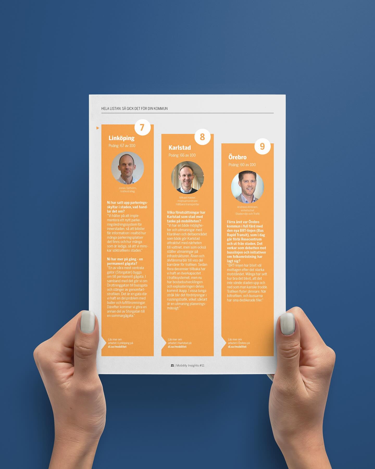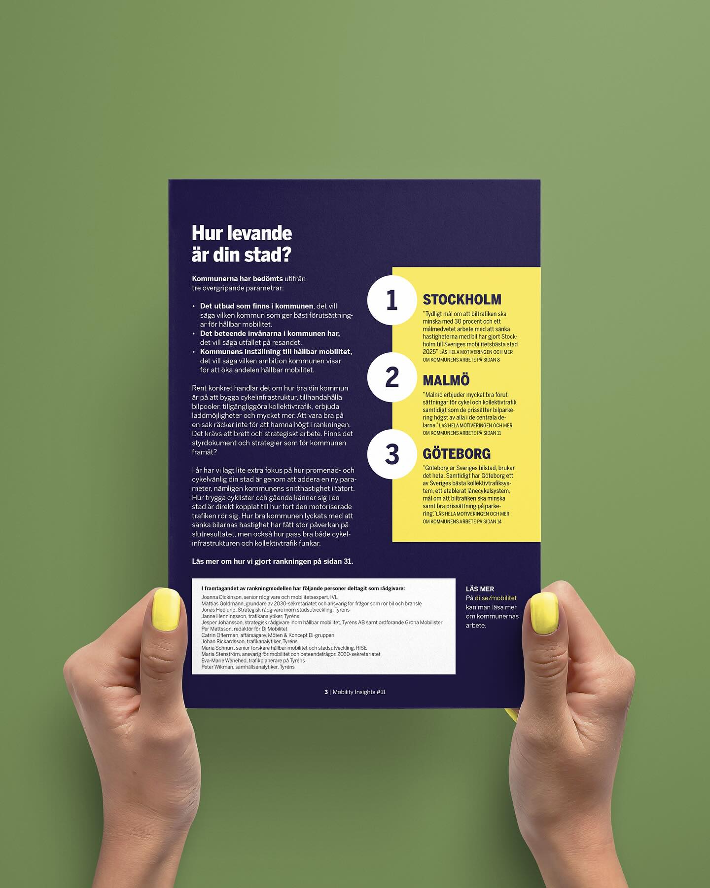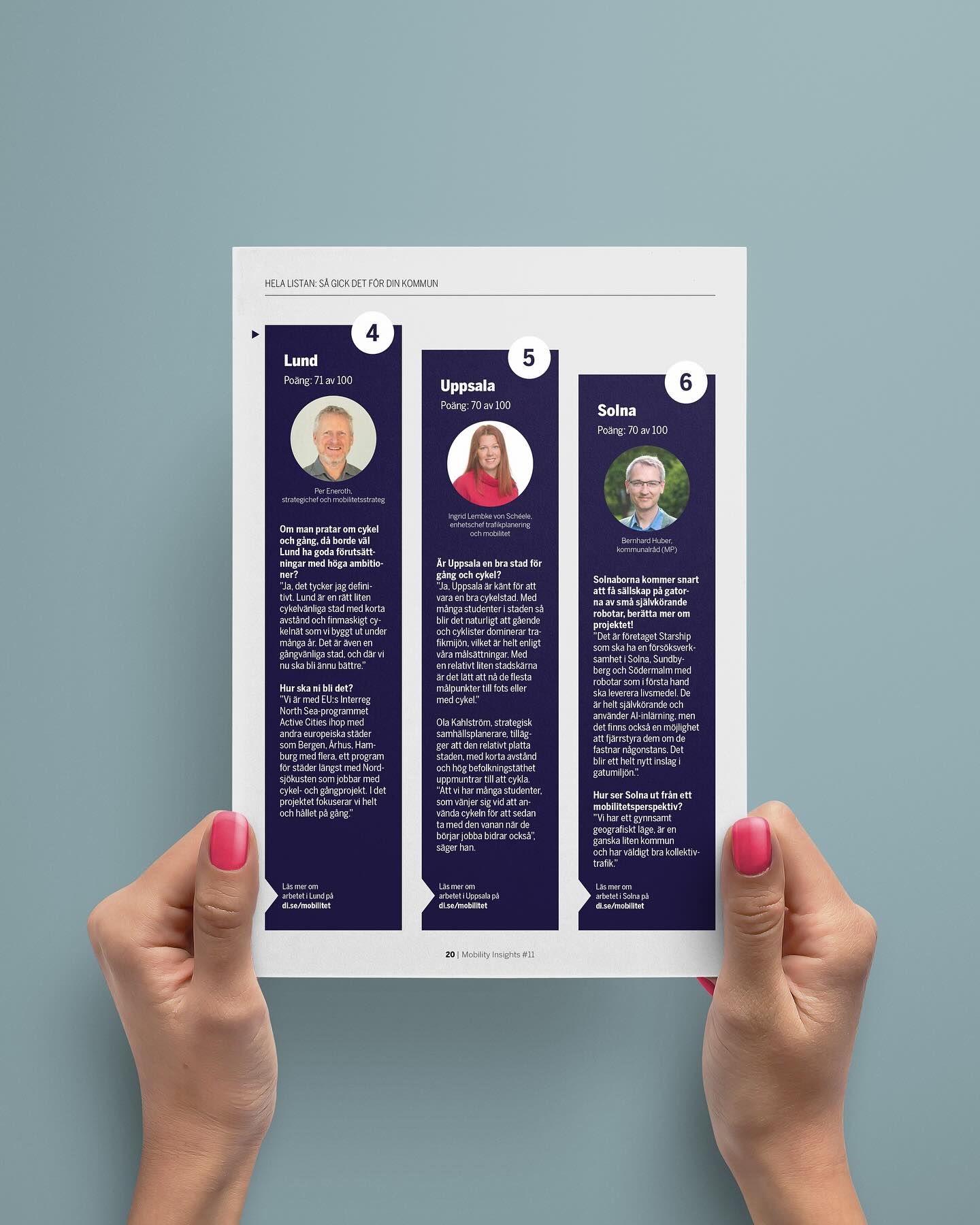 Di Mobilitet ger ut rapporten Mobility Insights två gånger per år med målet att kartlägga, identifiera och analysera trender och utveckling inom mobilitet. k-art har utvecklat formspråket utifrån satt grafisk profil och formger rapporten löpande. Alla rapporter finns att läsa på di.se/amnen/mobility-insights