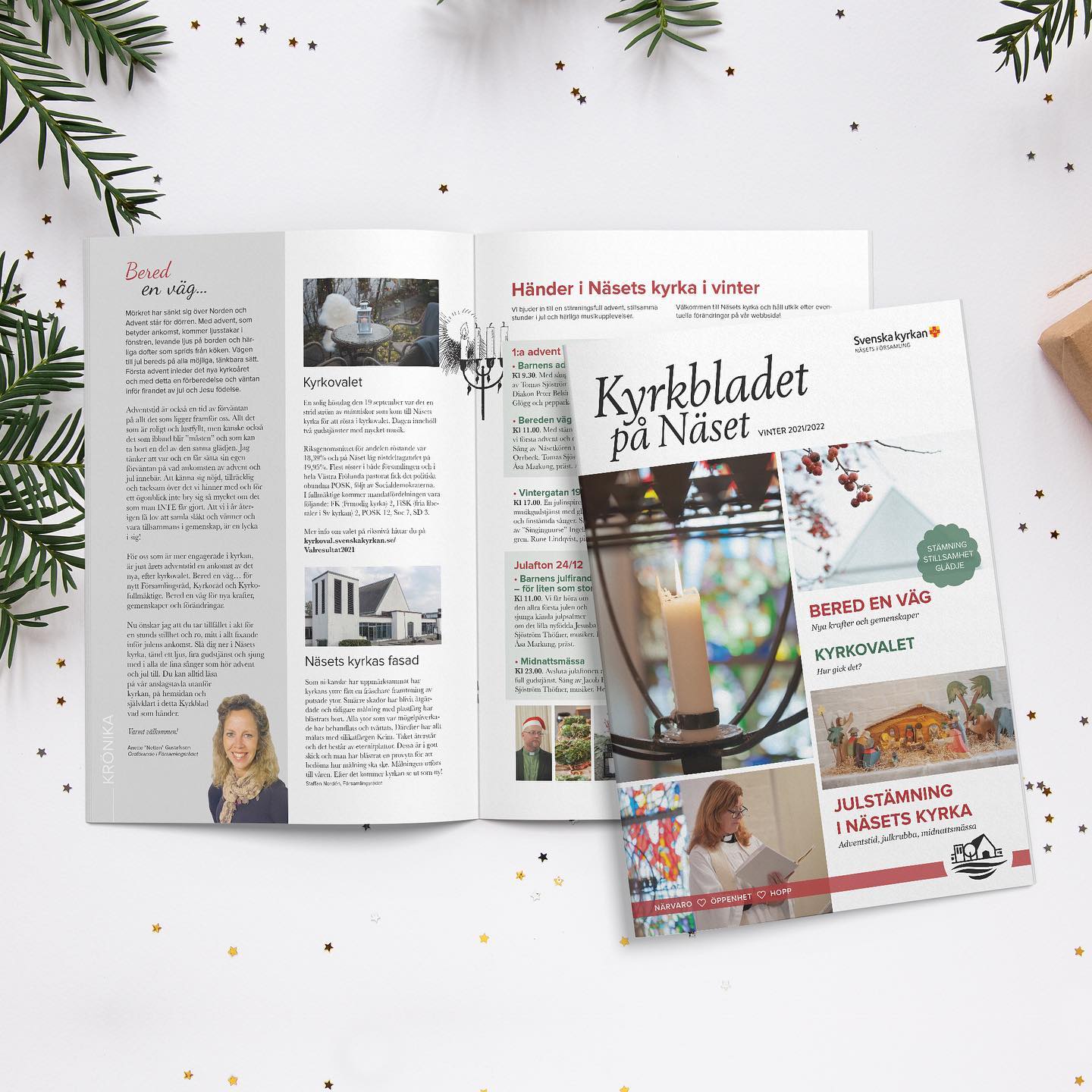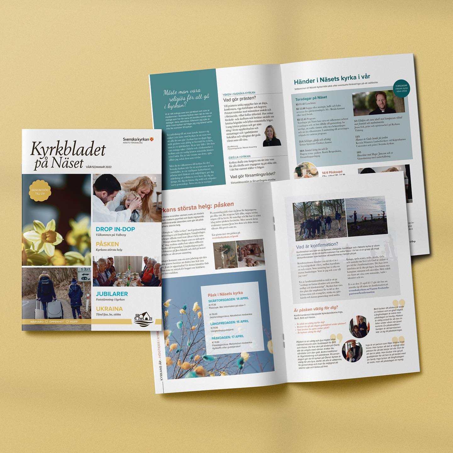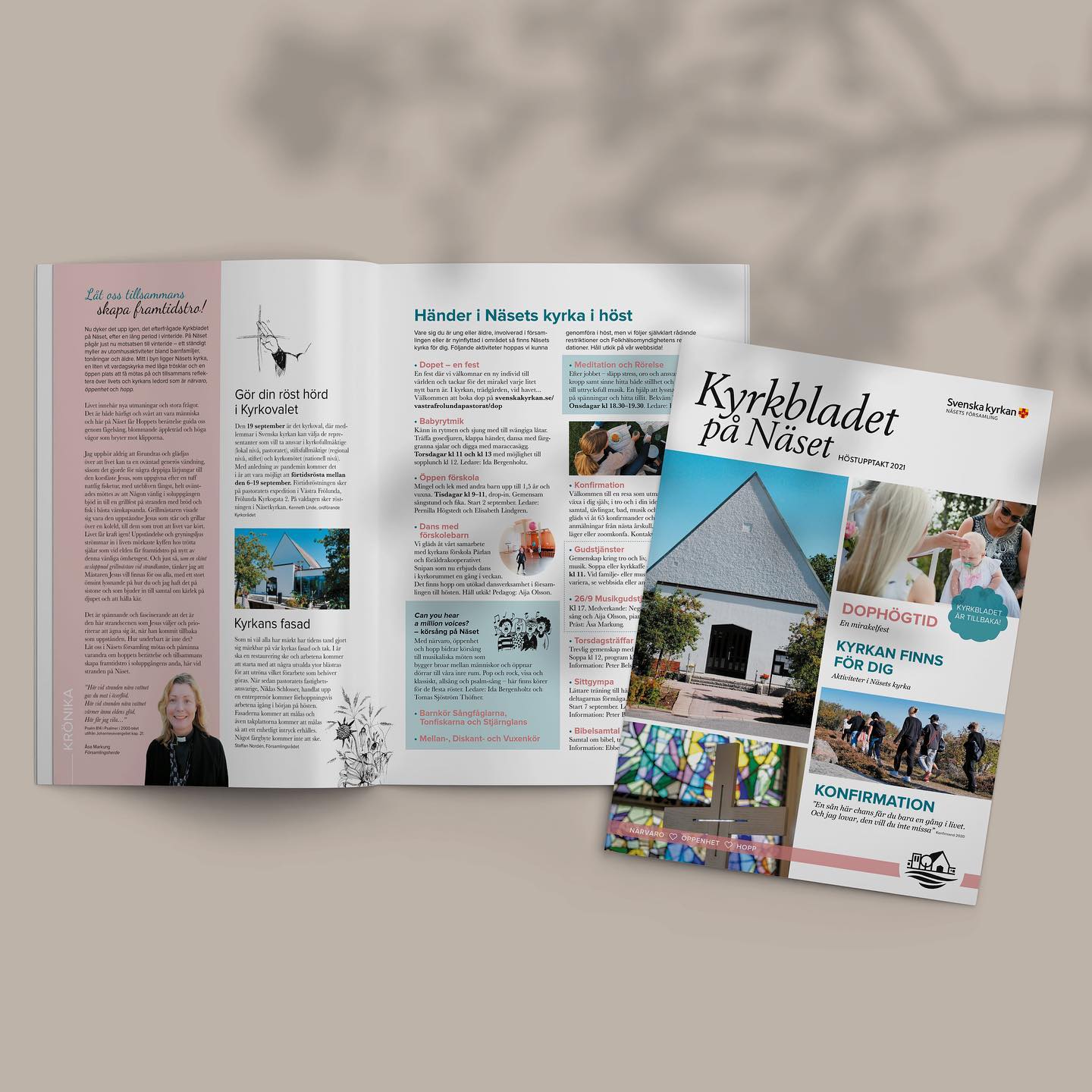 Kyrkbladet på Näset ges ut tre gånger per år och innehåller händelser och aktiviteter som sker i Näsets församling.